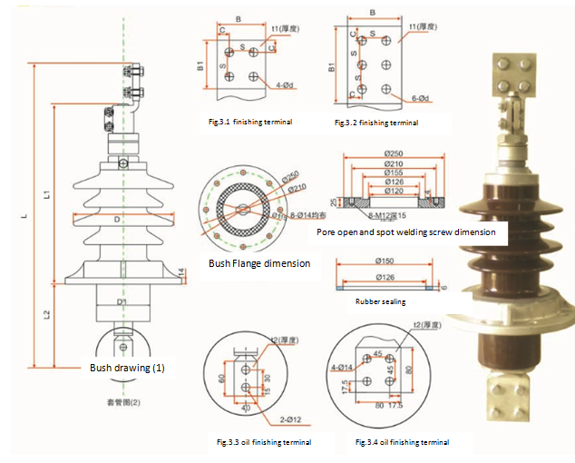 - Wind power photovoltaic Box Transformer Substation 40.5KV bushing