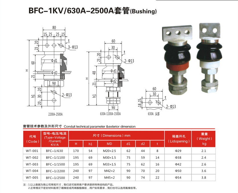 BFC-1KV/630A-2500A变压器套管