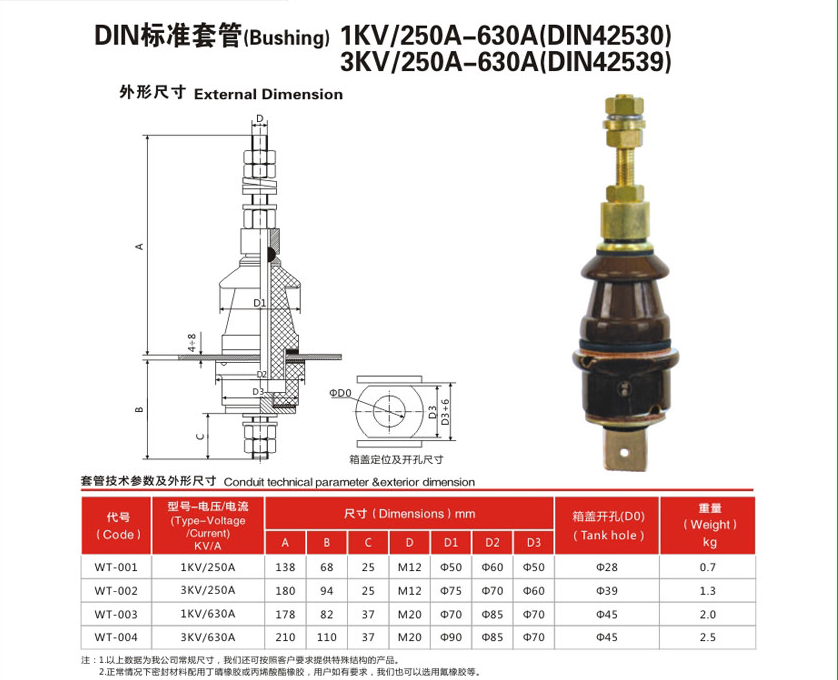 1KV/250A-630A(DIN42530) 3KV/250A-630A(DIN42539)变压器套管