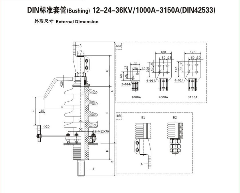 12-24-36KV/1000A-3150A(DIN42533)变压器套管