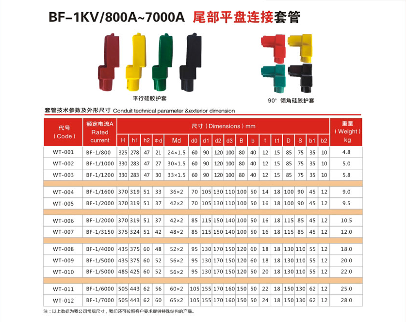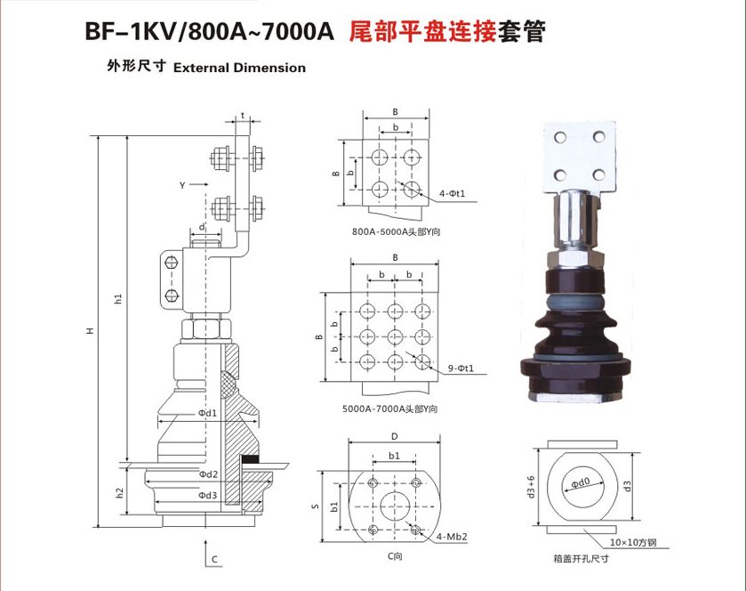 BF-1KV800A~7000A尾部平盘连接变压器套管
