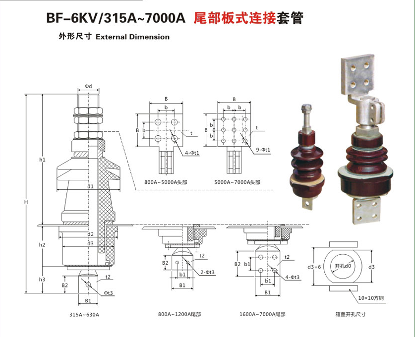 BF-6KV/315A~7000A尾部板式连接变压器套管