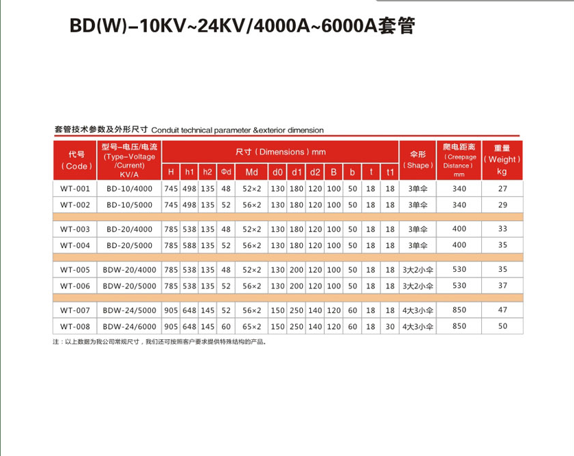 BD(W)-10KV~24KV/4000A~6000A变压器套管