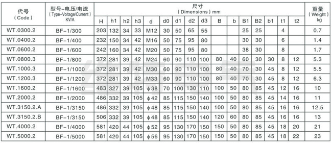 BF-1 KV/300A-5000A变压器套管(尾部板式连接)