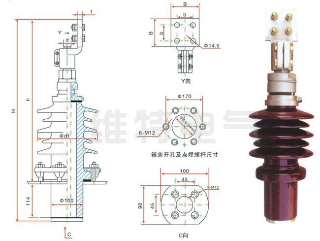 1.3普通型套管适用于轻污秽地区,防污型套管适用于重污秽地区c 1.4安装角度:垂直或倾斜角度不超过30°。
