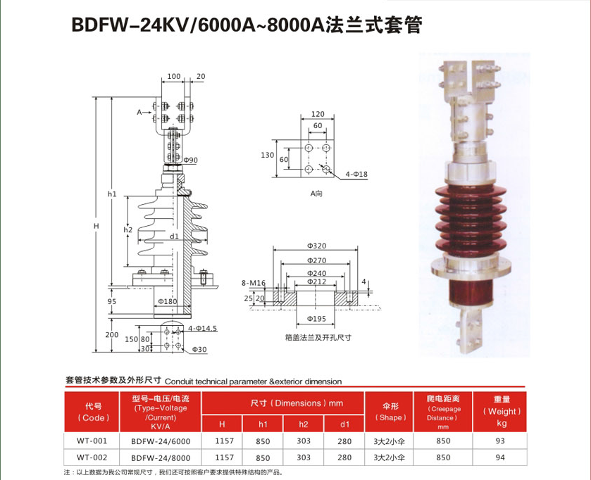 BDFW-24KV/6000A~8000A法兰式变压器套管