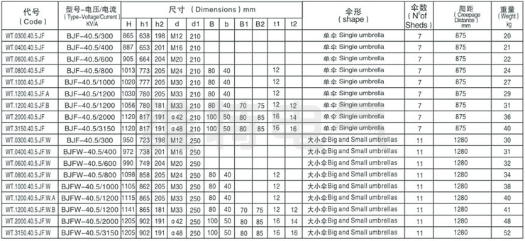 BJF-40.5KV/300A-3150A BJFW-40.5KV/300A-3150A变压器套管