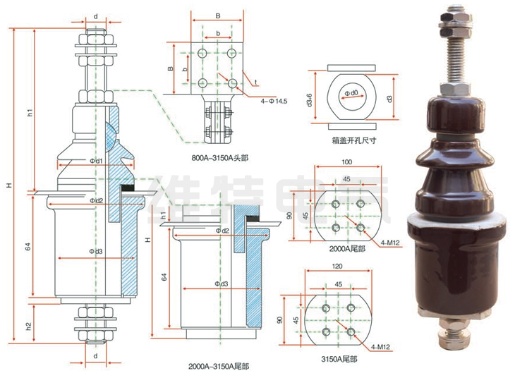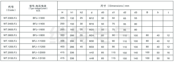 B-变压器用;D-单体瓷绝缘;F-复合瓷绝缘;J-有附加绝缘:W-防污;L-穿缆(或可装电流互感器),套管型号中“广前 的数字表示额定电压(KV ) 后的数字表示额定电流(A)。