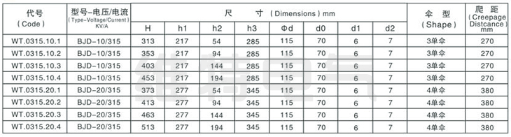 B-变压器用;D-单体瓷绝缘;F-复合瓷绝缘;J-有附加绝缘:W-防污;L-穿缆(或可装电流互感器),套管型号中“广前 的数字表示额定电压(KV ) 后的数字表示额定电流(A)。